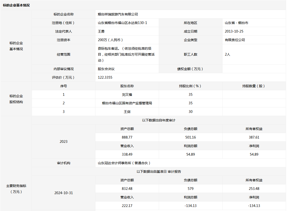煙臺(tái)祥瑞旅游汽車有限公司35%國有股權(quán)