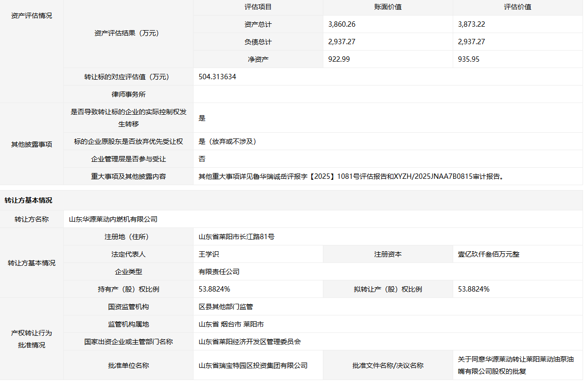 • 轉(zhuǎn)讓方: 山東華源萊動內(nèi)燃機有限公司